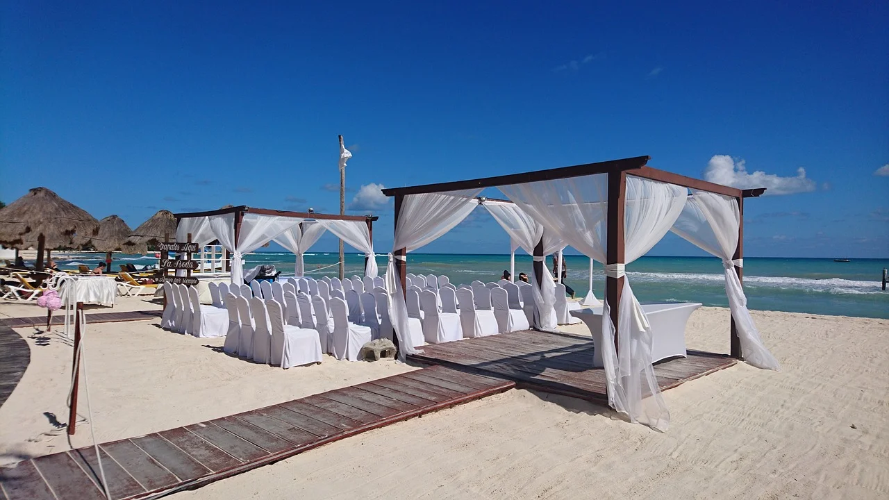 Ceremonies are held on the beach, in ocean-view ballrooms, chapels, gardens, terraces, foyers, gazebos and piers with thatched roofs, or even on board a boat at sea; options include typical Mexican weddings and Mayan ceremonies.